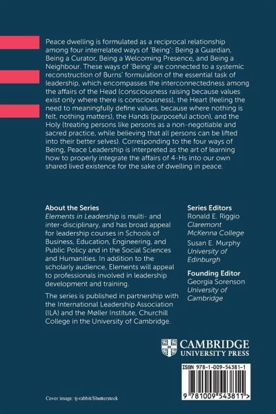 Peace dwelling is formulated as a reciprocal relationship among four interrelated ways of 'Being': Being a Guardian, Being a Curator, Being a Welcoming Presence, and Being a Neighbour. These ways of 'Being' are connected to a systemic reconstruction of Burns' formulation of the essential task of leadership, which encompasses the interconnectedness among the affairs of the Head (consciousness raising because values exist only where there is consciousness), the Heart (feeling the need to meaningfully define values, because where nothing is felt, nothing matters), the Hands (purposeful action) and the Holy (treating persons like persons as a non-negotiable and sacred practice, while believing that all persons can be lifted into their better selves). Corresponding to the four ways of Being, Peace Leadership is interpreted as the art of learning how to properly integrate the affairs of 4-Hs into our own shared lived existence for the sake of dwelling in peace.