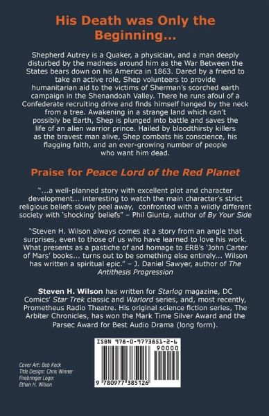 His Death was only the Beginning... Shepherd Autrey is a Quaker, a physician, and a man deeply disturbed by the madness around him as the War Between the States bears down on his America in 1863. Dared by a friend to take an active role, Shep volunteers to provide humanitarian aid to the victims of Sherman's scorched earth campaign in the Shenandoah Valley. There he runs foul of a Confederate recruiting drive and finds himself hanged by the neck from a tree. Awakening in a strange land which can't possibly be earth, Shep is plunged into battle and saves the life of an alien warrior prince. Hailed by bloodthirsty killers as the bravest man alive, Shep combats his conscience, his flagging faith, and an ever-growing number of people who want him dead.