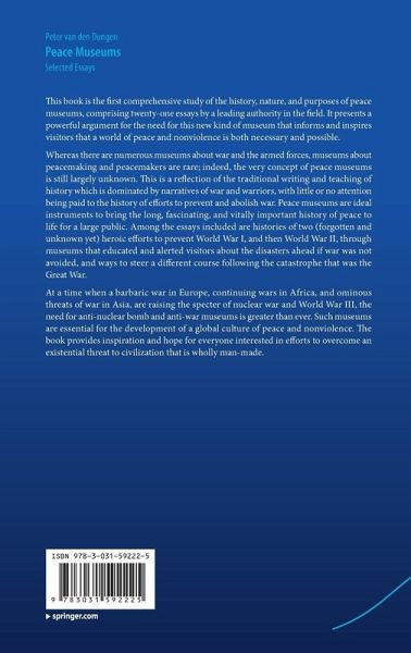 Whereas there are numerous museums about war and the armed forces, museums about peacemaking and peacemakers are rare; indeed, the very concept of peace museums is still largely unknown. This is a reflection of the traditional writing and teaching of history which is dominated by narratives of war and warriors, with little or no attention being paid to the history of efforts to prevent and abolish war. Peace museums are ideal instruments to bring the long, fascinating, and vitally important history of peace to life for a large public. Among the essays included are histories of two (forgotten and unknown yet) heroic efforts to prevent World War I, and then World War II, through museums that educated and alerted visitors about the disasters ahead if war was not avoided, and ways to steer a different course following the catastrophe that was the Great War.