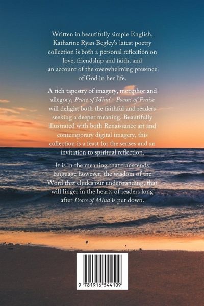 Written in beautifully simple English, Katharine Ryan Begley's latest poetry collection is both a personal reflection on love, friendship and faith, and an account of the overwhelming presence of God in her life. A rich tapestry of imagery, metaphor and allegory, Peace of Mind - Poems of Praise will delight both the faithful and readers seeking a deeper meaning. Beautifully illustrated with both Renaissance art and contemporary digital imagery, this collection is both a feast for the senses and an invitation to spiritual reflection. It is in the meaning that transcends language however, the wisdom of the Word that eludes our understanding, that will linger in the hearts of readers long after Peace of Mind is put down.