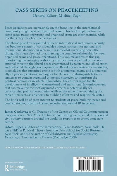 Peace operations are increasingly on the front line in the international community's fight against organized crime; this book explores how, in some cases, peace operations and organized crime are clear enemies, while in others, they may become tacit allies. The threat posed by organized crime to international and human security has become a matter of considerable strategic concern for national and international decision-makers, so it is somewhat surprising how little thought has been devoted to addressing the complex relationship between organized crime and peace operations. This volume addresses this gap, questioning the emerging orthodoxy that portrays organized crime as an external threat to the liberal peace championed by western and allied states and delivered through peace operations. Based upon a series of case studies it concludes that organized crime is both a potential enemy and a potential ally of peace operations, and it argues for the need to distinguish between strategies to contain organized crime and strategies to transform the political economies in which it flourishes. The editors argue for the development of intelligent, transnational, and transitional law enforcement that can make the most of organized crime as a potential ally for transforming political economies, while at the same time containing the threat it presents as an enemy to building effective and responsible states. The book will be of great interest to students of peacebuilding, peace and conflict studies, organised crime, Security Studies and IR in general.