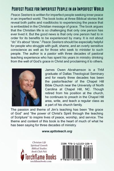 Peace Seekers is written for imperfect people seeking inner peace in an imperfect world. The book looks at three Biblical stories that reveal both paths and roadblocks to experiencing the peace that is embedded in the Christian message of grace. The book argues that the Christian life is so challenging that only one person has ever lived it. But the good news is that only one person had to in order for its benefits to be experienced by many. It is not about "do" its about "done." Peace Seekers should be especially helpful for people who struggle with guilt, shame, and an overly sensitive conscience as well as for those who seek to minister to such people. The author is a pastor with three decades of pastoral teaching experience who has spent his years in ministry drinking from the well of God's grace in Christ and proclaiming it to others.