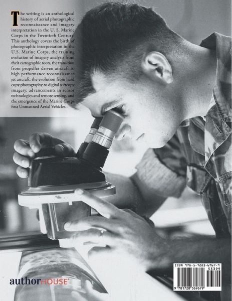 The writing is an anthological history of aerial photographic reconnaissance and imagery interpretation in the U. S. Marine Corps in the Twentieth Century. This anthology covers the birth of photographic interpretation in the U.S. Marine Corps, the training evolution of imagery analysts from their cartographic roots, the transition from propeller driven aircraft to high performance reconnaissance jet aircraft, the evolution from hard copy photography to digital softcopy imagery, advancements in sensor technologies and remote sensing, and the emergence of the Marine Corps first Unmanned Aerial Vehicles.
