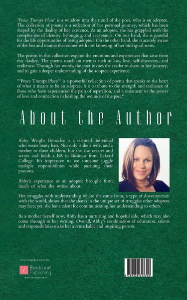 """"""Peace Trumps Place"""" is a window into the mind of the poet, who is an adoptee. The collection of poems is a reflection of her personal journey, which has been shaped by the duality of her existence. As an adoptee, she has grappled with the complexities of identity, belonging, and acceptance. On one hand, she is grateful for the life opportunities of being adopted. On the other hand, she is acutely aware of the loss and trauma that comes with not knowing of her biological roots. The poems in this collection explore the emotions and experiences that arise from this duality. The poems touch on themes such as loss, love, self-discovery, and resilience. Through her words, the poet invites the reader to share in her journey, and to gain a deeper understanding of the adoptee experience. """"Peace Trumps Place"""" is a powerful collection of poems that speaks to the heart of what it means to be an adoptee. It is a tribute to the strength and resilience of those who have experienced the pain of separation, and a testament to the power of love and connection in healing the wounds of the past.""