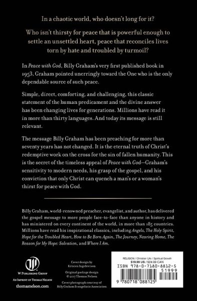 Billy Graham shares Godâ s gentle, reassuring promise of spiritual calm---of authentic personal peace---amidst a personal life wracked with too much stress, too many burdens, too great a heartache.