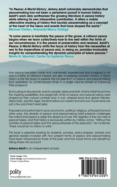 How peace has been made and maintained, experienced and imagined is not only a matter of historical interest, but also of pressing concern. Peace: A World History is the first study to explore the full spectrum of peace and peacemaking from prehistoric to contemporary times in a single volume aimed at improving their prospects. By focusing on key periods, events, people, ideas and texts, Antony Adolf shows how the inspiring possibilities and pragmatic limits of peace and peacemaking were shaped by their cultural contexts and, in turn, shaped local and global histories. Diplomatic, pacifist, legal, transformative non-violent and anti-war movements are just a few prominent examples. Proposed and performed in socio-economic, political, religious, philosophical and other ways, Adolf's presentation of the diversity of peace and peacemaking challenges the notions that peace is solely the absence of war, that this negation is the only task of peacemakers, and that history is exclusively written by military victors. "Without the victories of peacemakers and the resourcefulness of the peaceful," he contends, "there would be no history to write." This book is essential reading for students, scholars, policy-shapers, activists and general readers involved with how present forms of peace and peacemaking have been influenced by those of the past, and how future forms can benefit by taking these into account.