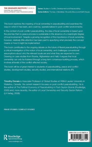This book explores the meaning of local ownership in peacebuilding and examines the ways in which it has been, and could be, operationalized in post-conflict environments. In the context of post-conflict peacebuilding, the idea of local ownership is based upon the premise that no peace process is sustainable in the absence of a meaningful degree of local involvement. Despite growing recognition of the importance of local ownership, however, relatively little attention has been paid to specifying what precisely the concept means or how it might be implemented. This volume contributes to the ongoing debate on the future of liberal peacebuilding through a critical investigation of the notion of local ownership, and challenges conventional assumptions about who the relevant locals are and what they are expected to own. Drawing on case studies from Bosnia, Afghanistan and Haiti, the text argues that local ownership can only be fostered through a long-term consensus-building process, which involves all levels of the conflict-affected society. This book will be of great interest to students of peacebuilding, peace and conflict studies, development studies, security studies and IR.
