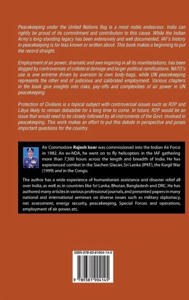 Peacekeeping under the United Nations flag is a most noble endeavour. India can rightly be proud of its commitment and contribution to this cause. While the Indian Army's long-standing legacy has been extensively and well documented, IAF's history in peacekeeping is far less known or written about. This book makes a beginning to put the record straight. Employment of air power, dramatic and awe inspiring in all its manifestations, has been dogged by controversies of collateral damage and larger political ramifications. NATO's use is one extreme driven by aversion to own body-bags, while UN peacekeeping represents the other end of judicious and calibrated employment. Various chapters in the book give insights into risks, pay-offs and complexities of air power in UN peacekeeping. Protection of Civilians is a topical subject with controversial issues such as R2P and Libya likely to remain debatable for a long time to come. In future, R2P would be an issue that would need to be closely followed by all instruments of the Govt. involved in peacekeeping. This work makes an effort to put this debate in perspective and poses important questions for the country.