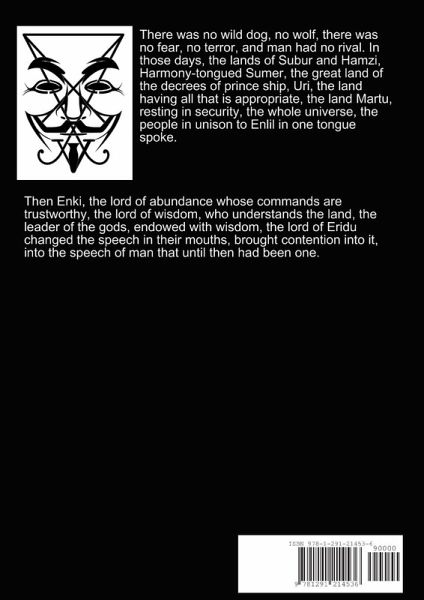 There was no wild dog, no wolf, there was no fear, no terror, and man had no rival. In those days, the lands of Subur and Hamzi, Harmony-tongued Sumer, the great land of the decrees of prince ship, Uri, the land having all that is appropriate, the land Martu, resting in security, the whole universe, the people in unison to Enlil in one tongue spoke. Then Enki, the lord of abundance whose commands are trustworthy, the lord of wisdom, who understands the land, the leader of the gods, endowed with wisdom, the lord of Eridu changed the speech in their mouths, brought contention into it, into the speech of man that until then had been one.