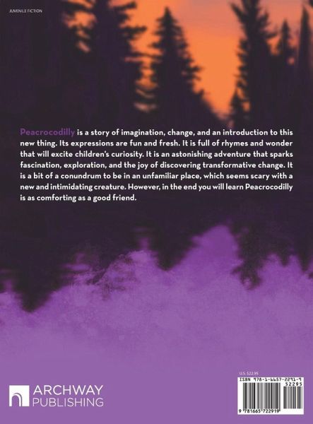 Peacrocodilly is a story of imagination, change, and an introduction to this new thing. Its expressions are fun and fresh. It is full of rhymes and wonder that will excite children's curiosity. It is an astonishing adventure that sparks fascination, exploration, and the joy of discovering transformative change. It is a bit of a conundrum to be in an unfamiliar place, which seems scary with a new and intimidating creature. However, in the end you will learn Peacrocodilly is as comforting as a good friend.