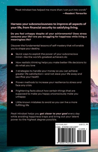 Harness your subconsciousness to improve all aspects of your life, from financial security to satisfying living. Do you feel unhappy despite all your achievements? Does stress consume your life? Are you struggling for happiness while living a meaningless life? Discover the fundamental lessons of self-transformation that will enable you to shape your destiny.Quick ways to exploit the power of your subconscious mind that makes world's greatest achievers How realistic thinking helps you make better life decisions to do what you love 7 strategies to handle your money toward greater life satisfaction, without slaving your life away and sacrificing your health Proven sets of methods to increase your resilience to stress and face any crisis The uncomfortable truth of conventional happiness advices that unconsciously make you unhappy Little-known mistakes you can't afford to ignore now to avoid living regretfully in future Discover the limitless possibilities of your subconscious mind to make your wildest dream a reality with Peak Mindset.