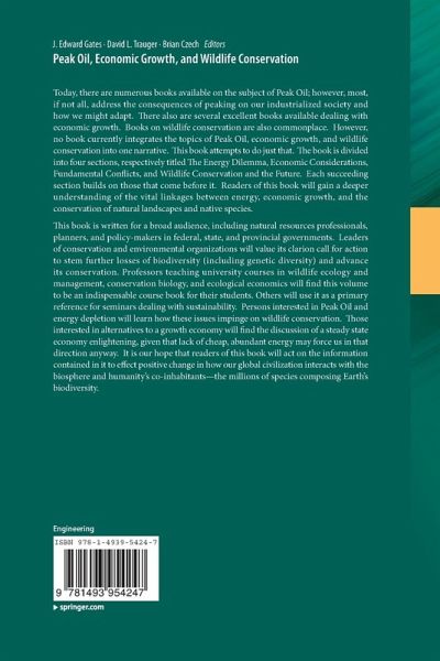 The proposed book focuses on one of the most important issues affecting humankind in this century - Peak Oil or the declining availability of abundant, cheap energy-and its effects on our industrialized economy and wildlife conservation. Energy will be one of the defining issues of the 21st Century directly affecting wildlife conservation wherever energy extraction is a primary economic activity and indirectly through deepening economic recessions. Since cheap, abundant energy has been at the core of our industrial society, and has resulted in the technological advancements we enjoy today, the peak in world oil extraction would potentially have major impacts on civilization unless we prepare well in advance. One potential economic solution covered in the book would be a Steady State Economy with a stable population and per capita consumption, particularly in such industrialized countries as the United States. Furthermore, the lack of cheap, abundant energy directly and indirectlyaffects conservation efforts by professional societies and federal and state agencies, and NGOs concerned with wildlife issues. We need to recognize these potential problems and prepare, as much as possible, for the consequences stemming from them.