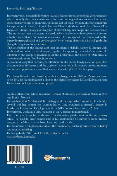 Stefan is a mechanical engineer, married to Dana with two children. He lives a quiet life, unaware that his cold and insensitive behaviour is driving him away from his wife and preventing him from forming deep friendships. A mountain lover, he decides to climb the challenging Peak Tower alone. On the way, he meets the enigmatic and mysterious Demetrius, who is also determined to conquer the same mountain. They decide to continue together. The conversations between the two will lead Stefan on an inner journey in search of the memories of a trauma that has been erased from his memory and that can only now take shape to be processed and accepted. To reach the summit, he will have to bring up forgotten memories, come to terms with his own emotions and find the strength to forgive himself.