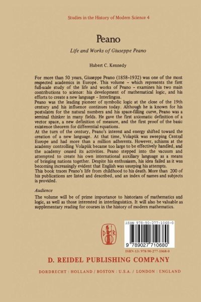 All students of mathematics know of Peano's postulates for the natural numbers and his famous space-filling curve, yet their knowledge often stops there. Part of the reason is that there has not until now been a full-scale study of his life and works. This must surely be surprising, when one realizes the length of his academic career (over 50 years) and the extent of his publica tions (over 200) in a wide variety of fields, many of which had immediate and long-term effects on the development of modern mathematics. A study of his life seems long overdue. It appeared to me that the most likely person to write a biography of Peano would be his devoted disciple Ugo Cassina, with whom I studied at the University of Milan in 1957-58. I wrote to Professor Cassina on 29 October, 1963, inquiring if he planned to write the biography, and I offered him my assistance, since I hoped to return to Italy for a year. He replied on 28 November, 1963, suggesting that we collaborate, meaning by thisthatI would write the biography, in English, using his material and advice. I gladly agreed to this suggestion, but work on the project had hardly begun when Professor Cassina died unexpectedly on 5 October, 1964. I then decided to continue the project on my own. I spent the academic year 1966-67 in Turin; completion of the book took ten years.