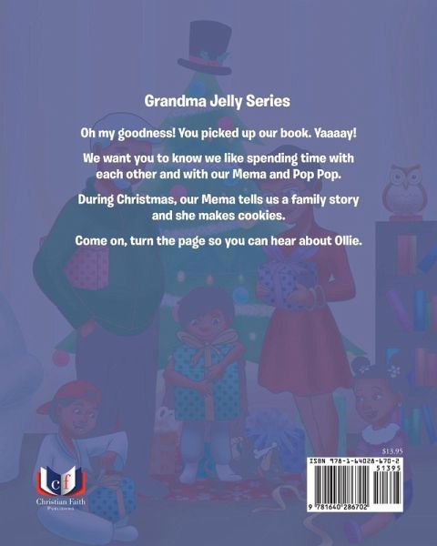 Oh my goodness! You picked up our book. Yaaaay! We want you to know we like spending time with each other and with our Mema and Pop Pop. During Christmas, our Mema tells us a family story and she makes cookies. Come on, turn the page so you can hear about Ollie.