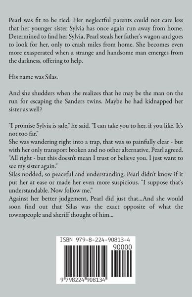 Pearl was fit to be tied. Her neglectful parents could not care less that her younger sister Sylvia has once again run away from home. Determined to find her Sylvia, Pearl steals her father's wagon and goes to look for her, only to crash miles from home. She becomes even more exasperated when a strange and handsome man emerges from the darkness, offering to help. His name was Silas. And she shudders when she realizes that he may be the man on the run for escaping the Sanders twins. Maybe he had kidnapped her sister as well? "I promise Sylvia is safe," he said. "I can take you to her, if you like. It's not too far." She was wandering right into a trap, that was so painfully clear - but with her only transport broken and no other alternative, Pearl agreed. "All right - but this doesn't mean I trust or believe you. I just want to see my sister again." Silas nodded, so peaceful and understanding. Pearl didn't know if it put her at ease or made her even more suspicious. "I suppose that's understandable. Now follow me." Against her better judgement, Pearl did just that...And she would soon find out that Silas was the exact opposite of what the townspeople and sheriff thought of him...