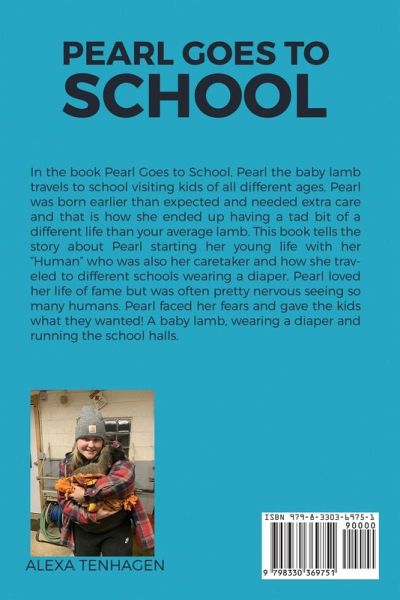 In the book Pearl Goes to School, Pearl the baby lamb travels to school visiting kids of all different ages. Pearl was born earlier than expected and needed extra care and that is how she ended up having a tad bit of a different life than your average lamb. This book tells the story about Pearl starting her young life with her "Human" who was also her caretaker and how she traveled to different schools wearing a diaper. Pearl loved her life of fame but was often pretty nervous seeing so many humans. Pearl faced her fears and gave the kids what they wanted! A baby lamb, wearing a diaper and running the school halls.