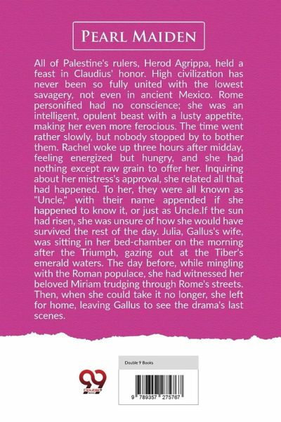 All of Palestine's rulers, Herod Agrippa, held a feast in Claudius' honor. High civilization has never been so fully united with the lowest savagery, not even in ancient Mexico. Rome personified had no conscience; she was an intelligent, opulent beast with a lusty appetite, making her even more ferocious. The time went rather slowly, but nobody stopped by to bother them. Rachel woke up three hours after midday, feeling energized but hungry, and she had nothing except raw grain to offer her. Inquiring about her mistress's approval, she related all that had happened. To her, they were all known…mehr