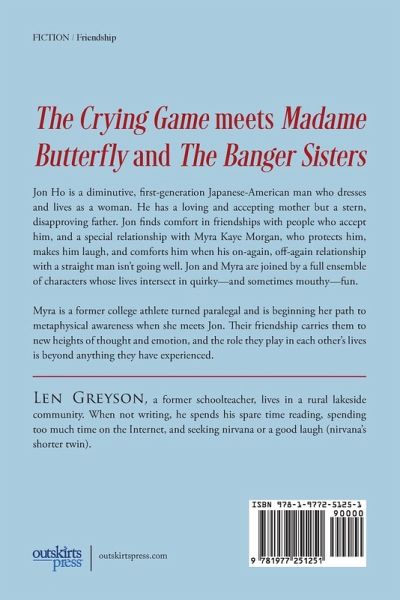 Pearl of the Orient...on a Stick is a story about Jon Ho and his friend, Myra Kaye Morgan. Jon, a first-generation Japanese American man who dresses and lives as a female most of the time, is pretty, smart, and funny. Myra makes him laugh, comforts him when his on-again/off-again relationship with a straight man isn't serving him well, and protects him from outside harm. Jon asks Myra all the right questions about her relationship choices and fulfills needs within Myra she didn't know existed. Their relationship is at the heart of Len Greyson's exploration of metaphysics and spirituality-through their friendship readers get a gentle dose of spiritual growth, humor, and an occasional glimpse of risqué fun.