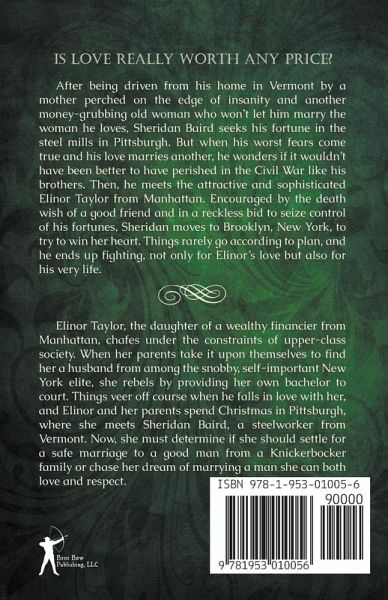 Is love really worth any price? After being driven from his home in Vermont by a mother perched on the edge of insanity and another money-grubbing old woman who won't let him marry the woman he loves, Sheridan Baird seeks his fortune in the steel mills in Pittsburgh. But when his worst fears come true and his love marries another, he wonders if it wouldn't have been better to have perished in the Civil War like his brothers. Then, he meets the attractive and sophisticated Elinor Taylor from Manhattan. Encouraged by the death wish of a good friend and in a reckless bid to seize control of his fortunes, Sheridan moves to Brooklyn, New York, to try to win her heart. Things rarely go according to plan, and he ends up fighting, not only for Elinor's love but also for his very life. Elinor Taylor, the daughter of a wealthy financier from Manhattan, chafes under the constraints of upper-class society. When her parents take it upon themselves to find her a husband from among the snobby, self-important New York elite, she rebels by providing her own bachelor to court. Things veer off course when he falls in love with her, and Elinor and her parents spend Christmas in Pittsburgh, where she meets Sheridan Baird, a steelworker from Vermont. Now, she must determine if she should settle for a safe marriage to a good man from a Knickerbocker family or chase her dream of marrying a man she can both love and respect.