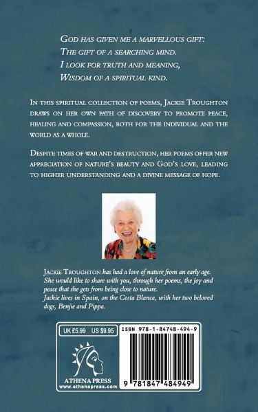God has given me a marvellous gift: The gift of a searching mind. I look for truth and meaning, Wisdom of a spiritual kind. In this spiritual collection of poems, Jackie Troughton draws on her own path of discovery to promote peace, healing and compassion, both for the individual and the world as a whole. Despite times of war and destruction, her poems offer new appreciation of nature's beauty and God's love, leading to higher understanding and a divine message of hope.