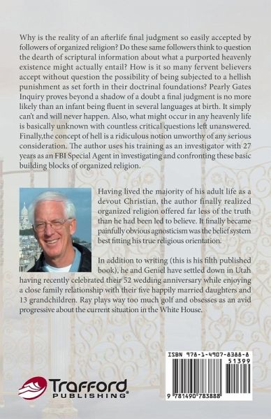 Why is the reality of an afterlife final judgment so easily accepted by followers of organized religion? Do these same followers think to question the dearth of scriptural information about what a purported heavenly existence might actually entail? How is it so many fervent believers accept without question the possibility of being subjected to a hellish punishment as set forth in their doctrinal foundations? Pearly Gates Inquiry proves beyond a shadow of a doubt a final judgment is no more likely than an infant being fluent in several languages at birth. It simply can’t and will never happen. Also, what might occur in any heavenly life is basically unknown with countless critical questions left unanswered. Finally,the concept of hell is a ridiculous notion unworthy of any serious consideration. The author uses his training as an investigator with 27 years as an FBI Special Agent in investigating and confronting these basic building blocks of organized religion.
