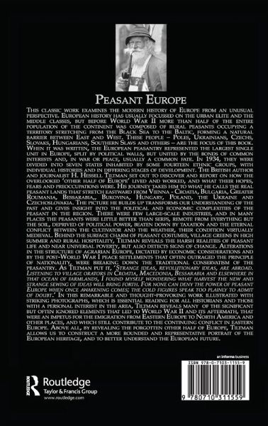 First published in the 1930s, Tiltman's Peasant Europe strays from the normal look at Europe during this time period. While much of the continent is concerned with "problems of international relations, industry and the future of armaments", Tiltman goes a step further than most writers and speaks with the common peasant to uncover their day-to-day concerns. He finds that most simply want consideration and a reasonable standard of living for themselves and their children. Accompanying the text are full-page photographs, most of which are taken by the author himself, which offer a candid look at peasant life.