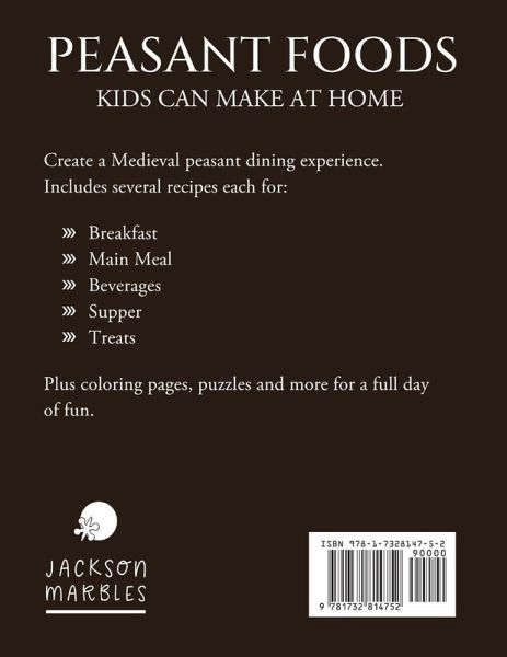 Youth groups and families can enjoy a medieval dining experience with selected kid-friendly recipes of foods that European peasants would have eaten. Includes several recipes each for:Breakfast Main Meal Beverages Supper Treats Plus coloring pages, puzzles and more for a full day of medieval themed fun.
