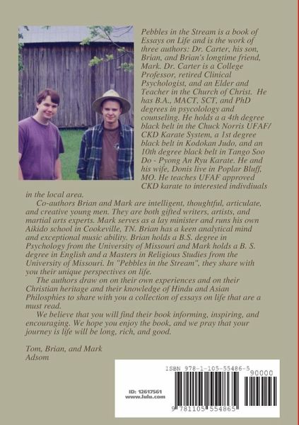 Pebbles in the Stream is a collection of essays about life, God's place in our life, about how to gain and maintain peace of mind, and how to live sanely in a sometimes insane world. The Essays are presented from a Christian and Eastern Philosophy perspective.