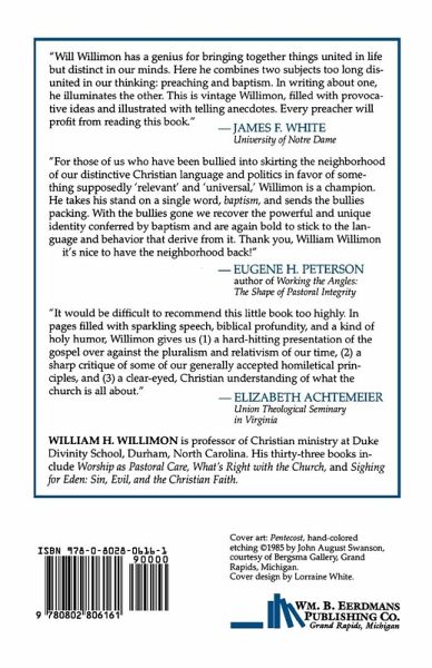 This is a print on demand book and is therefore non- returnable. Willimon writes with passion about the dynamics and implications of preaching to a congregation, to those who, having been called, are either baptized or yet to be baptized. The preacher, says Willimon, needs to address the people in a congregation with "peculiar speech," letting the biblical text call them to live a transformed life in keeping with their baptism. Within the book appear three powerful baptismal sermons — "The Invitation," "Divine Divestment," and "The New Family."