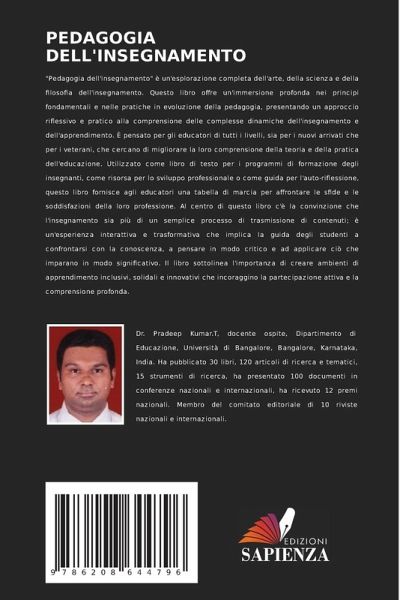 "Pedagogia dell'insegnamento" è un'esplorazione completa dell'arte, della scienza e della filosofia dell'insegnamento. Questo libro offre un'immersione profonda nei principi fondamentali e nelle pratiche in evoluzione della pedagogia, presentando un approccio riflessivo e pratico alla comprensione delle complesse dinamiche dell'insegnamento e dell'apprendimento. È pensato per gli educatori di tutti i livelli, sia per i nuovi arrivati che per i veterani, che cercano di migliorare la loro comprensione della teoria e della pratica dell'educazione. Utilizzato come libro di testo per i programmi di formazione degli insegnanti, come risorsa per lo sviluppo professionale o come guida per l'auto-riflessione, questo libro fornisce agli educatori una tabella di marcia per affrontare le sfide e le soddisfazioni della loro professione. Al centro di questo libro c'è la convinzione che l'insegnamento sia più di un semplice processo di trasmissione di contenuti; è un'esperienza interattiva e trasformativa che implica la guida degli studenti a confrontarsi con la conoscenza, a pensare in modo critico e ad applicare ciò che imparano in modo significativo. Il libro sottolinea l'importanza di creare ambienti di apprendimento inclusivi, solidali e innovativi che incoraggino la partecipazione attiva e la comprensione profonda.