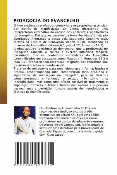 O livro explora os profundos contextos e os propósitos essenciais por detrás da manifestação de Cristo, oferecendo uma interpretação alternativa da análise dos conteúdos significativos do Evangelho. Daí que, os desafios da Nova Realidade Cristã são abordados integrando a busca pela Segurança Cognitiva (SC), através da Técnica de Renovação Mental (TRM), atendendo às nuances do Evangelho (Hebreus 6:1; João 1:12; Romanos 12:2).A obra adquire relevância ao demonstrar que a proficiência no Evangelho capacita o cristão a exercer influência tangível, garantindo que os conteúdos curriculares do Evangelho exemplificados em passagens como Mateus 4:4, Romanos 12:2 e João 1:12 proporcionem uma visão integrada dos benefícios que o cristão tem sobre o mundo visível. Trata-se de um convite para uma leitura que informa, inspira e desafia, proporcionando uma compreensão mais profunda e significativa da mensagem do Evangelho para os desafios contemporâneos, enfrentando o pecado não como uma inevitabilidade, mas como uma aflição passível de tratamento e superação. Capacita o leitor a buscar não apenas a superação pessoal, mas a perfeição humana através de metodologias e técnicas de manifestação.