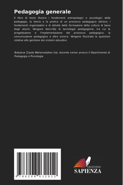 Il libro di testo illustra i fondamenti antropologici e assiologici della pedagogia, la teoria e la pratica di un processo pedagogico olistico; i fondamenti organizzativi e di attività della formazione della cultura di base degli alunni. Vengono descritte le tecnologie pedagogiche, tra cui la progettazione e l'implementazione del processo pedagogico, la comunicazione pedagogica e altre ancora. Vengono illustrate le questioni relative alla gestione dei sistemi educativi.