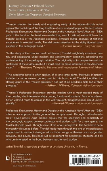 This book offers a new approach to the genre of the campus novel. Through a critical analysis of eleven novels, Aristi Trendel argues that the specificity and complexity of the pedagogic rapport between professor and student calls for a new genre: the Master-Disciple novel. After the 1980s, the professor-student relationship was highly scrutinized and politicized, making the Master-Disciple novel essential to critical theorists and educators. Furthermore, the Master-Disciple novel broadens the scope of the campus novel as the master-pupil rapport can develop beyond the halls of academia. Though some of the novels analyzed in this book have been thoroughly discussed before, Trendel reads them through the lens of the pedagogic rapport and in constant dialogue with a broad range of themes, such as gender, sexuality, and power. The book will be important for academics, students, and all who are interested in the bond between teacher and student.