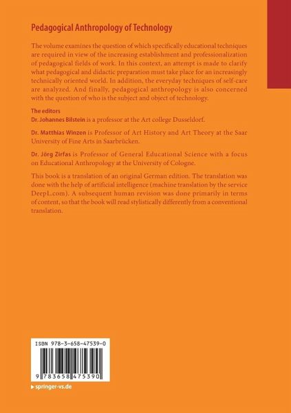 The volume examines the question of which specifically educational techniques are required in view of the increasing establishment and professionalization of pedagogical fields of work. In this context, an attempt is made to clarify what pedagogical and didactic preparation must take place for an increasingly technically oriented world. In addition, the everyday techniques of self-care are analyzed. And finally, pedagogical anthropology is also concerned with the question of who is the subject and object of technology.