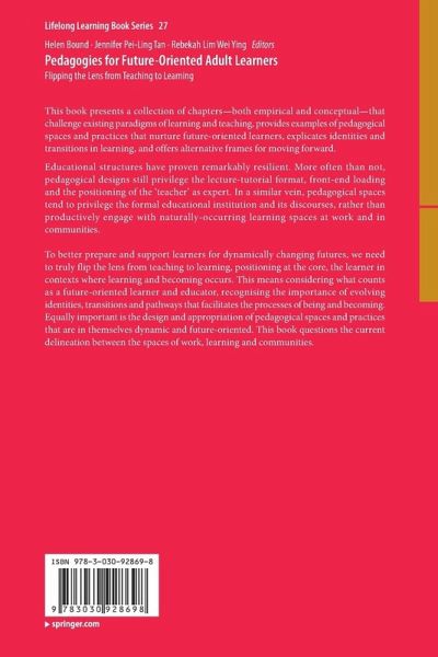 "This book represents a significant contribution to the literature on pedagogies of future-oriented adult learning and challenges the status quo in adult education. This book is a must-read for scholars, researchers, learners and educators seeking to understand innovative adult learning perspectives and experiences, enabling them to draw on this knowledge as they actively participate in the transformation process, while it also helps to understand the challenges in future-oriented adult education." (Muhammad Imran and Norah Almusharraf, International Review of Education, Vol. 69 (6), 2023)