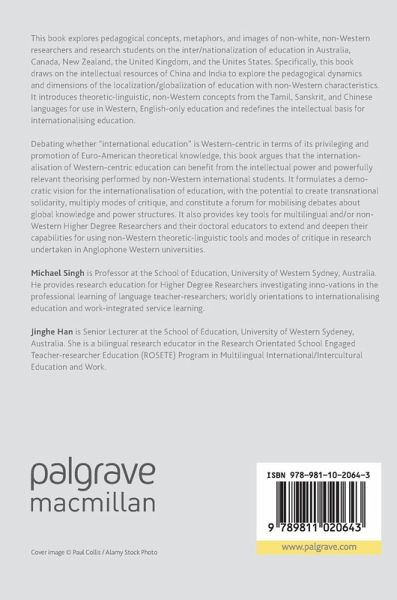 Debating whether 'international education' is Western-centric in terms of its privileging and promotion of Euro-American theoretical knowledge, this book contends that the internationalisation of Western-centric education can benefit from the intellectual power and powerfully relevant theorising performed by non-Western international students. It formulates a democratic vision for the internationalisation of education, with the potential to create transnational solidarity and constitute a forum for mobilising debates about global knowledge and power structures. It also provides key tools to use non-Western theoretic-linguistic tools and modes of critique in research undertaken in Anglophone Western universities.