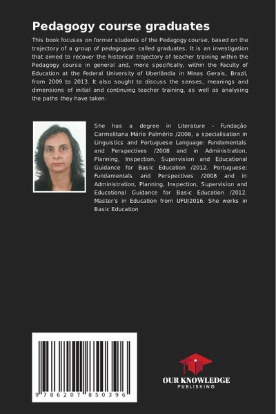 This book focuses on former students of the Pedagogy course, based on the trajectory of a group of pedagogues called graduates. It is an investigation that aimed to recover the historical trajectory of teacher training within the Pedagogy course in general and, more specifically, within the Faculty of Education at the Federal University of Uberlândia in Minas Gerais, Brazil, from 2009 to 2013. It also sought to discuss the senses, meanings and dimensions of initial and continuing teacher training, as well as analysing the paths they have taken.