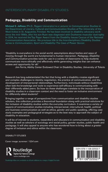 Bringing together a range of perspectives from communication and disability studies scholars, this collection provides a theoretical foundation along with practical solutions for the inclusion of disability studies within the everyday curriculum. It examines a variety of aspects of communication studies including interpersonal, intercultural, health, political and business communication as well as ethics, gender and public-speaking, offering case study examples and pedagogical strategies as to the best way to approach the subject of disability in education.