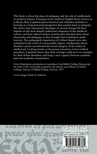 This book is about the place of pedagogy and the role of intellectuals in medieval dissent. Focusing on the medieval English heresy known as Lollardy, Rita Copeland places heretical and orthodox attitudes to learning in a long historical perspective that reaches back to antiquity. She shows how educational ideologies of ancient lineage left their imprint on the most sharply politicized categories of late medieval culture, and how radical teachers transformed inherited ideas about classrooms and pedagogy as they brought their teaching to adult learners. The pedagogical imperatives of Lollard dissent were also embodied in the work of certain public figures, intellectuals whose dissident careers transformed the social category of the medieval intellectual. Looking closely at the prison narratives of two Lollard preachers, Copeland shows how their writings could serve as examples for their fellow dissidents and forge a new rapport between academic and non-academic communities.