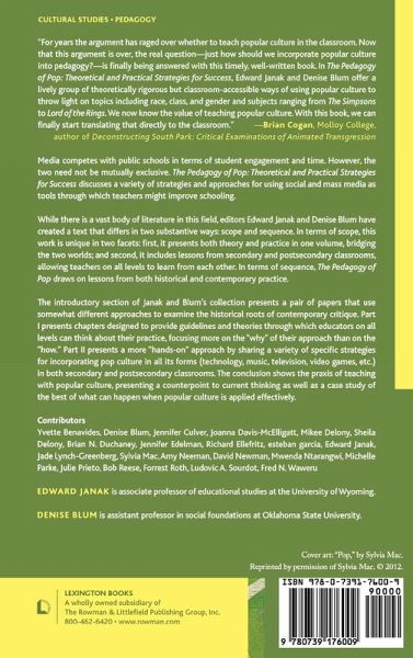 This book is a tool for educators at all levels to embrace infusing popular culture into their teaching in ways that both embrace and resist contemporary thinking. Its chapters provide a range of theoretical and practical suggestions—some widely accepted, some somewhat controversial—to elicit discussion and spark creativity amongst all students.
