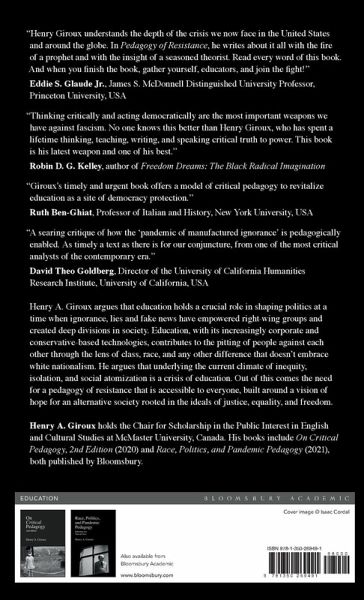 Henry A. Giroux argues that education holds a crucial role in shaping politics at a time when ignorance, lies and fake news have empowered right-wing groups and created deep divisions in society. Education, with its increasingly corporate and conservative-based technologies, is partly responsible for creating these division. It contributes to the pitting of people against each other through the lens of class, race, and any other differences that don't embrace White nationalism. Giroux's analysis ranges from the pandemic and the inequality it has revealed, to the rise of Trumpism and its afterlife, and to the work of Paulo Freire and how his book Pedagogy of Hope can guide us in these dark times and help us produce critical and informed citizens. He argues that underlying the current climate of inequity, isolation, and social atomization (all exacerbated by the pandemic) is a crisis of education. Out of this comes the need for a pedagogy of resistance that is accessible to everyone, built around a vision of hope for an alternative society rooted in the ideals of justice, equality, and freedom.