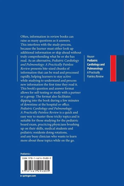 Often, information in review books can raise as many questions as it answers. This interferes with the study process, because the learner must either look up additional information or skip ahead without truly comprehending what he or she has read. As an alternative, Pediatric Cardiology and Pulmonology: A Practically Painless Review presents bite-size chunks of information that can be read and processed rapidly, helping learners to stay active while studying and to pick up new information the first time they read it. This book's question and answer format allows for self-testing or study with a partner or a group. The format also facilitates dipping into the book during a few minutes of downtime at the hospital or office. Pediatric Cardiology and Pulmonology: A Practically Painless Review is a quick and easy way to master these tricky topics and is suitable for those studying for the pediatric board exam, practicing physicians brushing up their skills, and any busy clinician who wants to learn more about these topics while on the go.