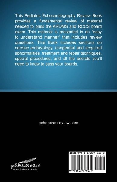 This Pediatric Echocardiography Review Book provides a fundamental review of material needed to pass the ARDMS and RCCS board exam. This material is presented in an "easy to understand manner" that includes review questions. This Book includes sections on cardiac embryology, congenital and acquired abnormalities, treatment and repair techniques, special procedures, and all the secrets you’ll need to know to pass your boards.