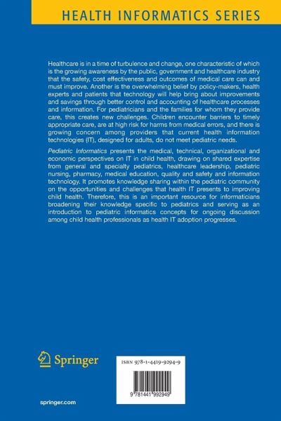 From the reviews: "This book on pediatric informatics is one in a series of focused on the emerging field of health informatics. ... It is directed at a very diverse audience including pediatricians, information services officers, and computer scientists working to integrate current information management into pediatric practice. ... This is a good reference to review the current state of the field before embarking on a program to move to electronic records in any pediatric practice." (Michael White, Doody's Review Service, January, 2010) "This is the first book specific to pediatrics. This comprehensive book describes the specific informatics aspects of pediatric medicine ... . The book is geared mainly for healthcare IT developers ... . For pediatricians, it is an introduction to the current topics in healthcare IT. This is a good starting point for both groups. ... a good first attempt geared for healthcare IT professionals who are trying to meet and understand the specific needs of those who provide care to pediatric and neonatal patients." (Matthew Cortez, Doody's Review Service, September, 2011)
