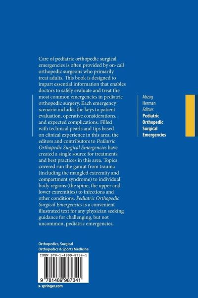 Emergency care of pediatric orthopedic surgical emergencies is often provided by orthopedic surgeons who primarily treat adults. Pediatric Orthopedic Surgical Emergencies is designed to provide the essential information needed to safely evaluate and treat the most common surgical emergencies in pediatric orthopedic surgery. Each emergency scenario includes the keys to patient evaluation, operative considerations, and expected complications. Each contributor provides technical pearls and tips based on their preferences and clinical experience in this area. Topics covered run the gamut from trauma (including the mangled extremity and compartment syndrome) to individual body regions (the spine, upper and lower extremities) to infection and other conditions. Pediatric Orthopedic Surgical Emergencies is a convenient, illustrated guide to procedures that can be challenging to those physicians who treat pediatric patients infrequently.