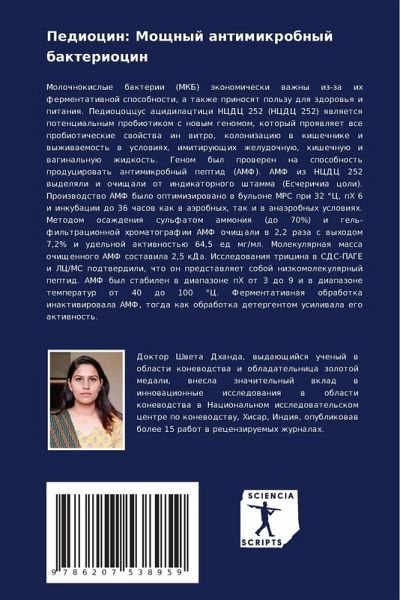 Molochnokislye bakterii (MKB) äkonomicheski wazhny iz-za ih fermentatiwnoj sposobnosti, a takzhe prinosqt pol'zu dlq zdorow'q i pitaniq. Pediococcus acidilactici NCDC 252 (NCDC 252) qwlqetsq potencial'nym probiotikom s nowym genomom, kotoryj proqwlqet wse probioticheskie swojstwa in witro, kolonizaciü w kishechnike i wyzhiwaemost' w uslowiqh, imitiruüschih zheludochnuü, kishechnuü i waginal'nuü zhidkost'. Genom byl proweren na sposobnost' producirowat' antimikrobnyj peptid (AMF). AMF iz NCDC 252 wydelqli i ochischali ot indikatornogo shtamma (Escherichia coli). Proizwodstwo AMF bylo optimizirowano w bul'one MRS pri 32 °C, pH 6 i inkubacii do 36 chasow kak w aärobnyh, tak i w anaärobnyh uslowiqh. Metodom osazhdeniq sul'fatom ammoniq (do 70%) i gel'-fil'tracionnoj hromatografii AMF ochischali w 2,2 raza s wyhodom 7,2% i udel'noj aktiwnost'ü 64,5 ed mg/ml. Molekulqrnaq massa ochischennogo AMF sostawila 2,5 kDa. Issledowaniq tricina w SDS-PAGE i LC/MS podtwerdili, chto on predstawlqet soboj nizkomolekulqrnyj peptid. AMF byl stabilen w diapazone pH ot 3 do 9 i w diapazone temperatur ot 40 do 100 °C. Fermentatiwnaq obrabotka inaktiwirowala AMF, togda kak obrabotka detergentom usiliwala ego aktiwnost'.