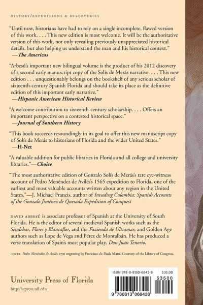 Pedro Menéndez de Avilés (1519-1574) founded St. Augustine in 1565. His expedition was documented by his brother-in-law, Gonzalo Solís de Merás, who left a detailed and passionate account of the events leading to the establishment of America's oldest city. Until recently, the only extant version of Solís de Merás's record was one single manuscript that Eugenio Ruidíaz y Caravia transcribed in 1893, and subsequent editions and translations have always followed Ruidíaz's text. In 2012, David Arbesú discovered a more complete record: a manuscript including folios lost for centuries and, more important, excluding portions of the 1893 publication based on retellings rather than the original document. In the resulting volume, Pedro Menéndez de Avilés and the Conquest of Florida, Arbesú sheds light on principal events missing from the story of St. Augustine's founding. By consulting the original chronicle, Arbesú provides readers with the definitive bilingual edition of this seminal text.