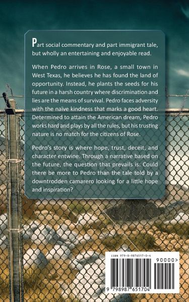 Part social commentary and part immigrant tale, but wholly an entertaining and enjoyable read. When Pedro arrives in Rose, a small town in West Texas, he believes he has found the land of opportunity. Instead, he plants the seeds for his future in a harsh country where discrimination and lies are the means of survival. Pedro faces adversity with the naïve kindness that marks a good heart. Determined to attain the American dream, Pedro works hard and plays by all the rules, but his trusting nature is no match for the citizens of Rose. Pedro's story is where hope, trust, deceit, and character entwine. Through a narrative based on the future, the question that prevails is: Could there be more to Pedro than the tale told by a downtrodden camarero looking for a little hope and inspiration?