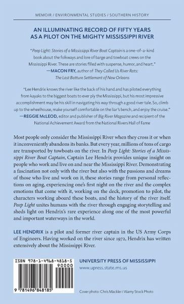 Most people only consider the Mississippi River when they cross it or when it inconveniently abandons its banks. But every year, millions of tons of cargo are transported by towboats on the river. In Peep Light: Stories of a Mississippi River Boat Captain, Captain Lee Hendrix provides unique insight on people who work and live on and near the Mississippi River. Hendrix, formerly a pilot for the Delta Queen Steamboat Co., has worked on the Mississippi for fifty years, first as a towboat deckhand in 1972 and eventually as a pilot of towboats and passenger vessels. In 2014, Hendrix became captain of the towboat Mississippi with the U.S. Army Corps of Engineers, then he later retired to return to passenger vessels. For Hendrix and others like him, he is at home on the river, living and dining with the same people they work with, working with familiar faces for years at a time and yet meeting new people every day. Demonstrating a fascination not only with the river but also with the passions and dreams of those who live and work on it, these stories range from personal reflections on aging, experiencing one's first night on the river and the complex emotions that come with it, working on the deck, promotion to pilot, the characters working aboard these boats, and the history of the river itself. Peep Light unites humans with the river through engaging storytelling and sheds light on Hendrix's rare experience along one of the most powerful and important waterways in the world.
